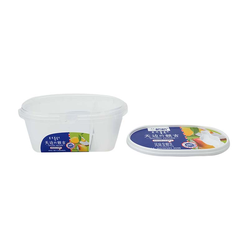 - ภาชนะพลาสติก PP สามารถใช้สำหรับไอศกรีมโยเกิร์ต, ขนมพุดดิ้งและยังสามารถใช้สำหรับการจัดเก็บอาหารอื่น ๆ ที่เกี่ยวข้อง ภาชนะบรรจุสามารถอยู่กับ IML ช้อนประกอบใต้ฝา พลาสติกฉีดขึ้นรูปซึ่งเป็นบรรจุภัณฑ์ที่ดีและใช้แล้วทิ้งและทนทาน